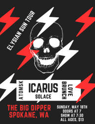 Icarus from Bozeman, MT brings some Big Sky rock to The Big Dipper with Love Brunch from Walla Walla along with hometown favorites Atomsk & Solace!