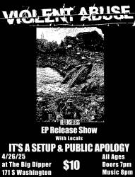 Violent Abuse celebrates their EP release for "Defenseless" with a rager at The Big Dipper on a Saturday night joined by It's A Setup and Hofsess